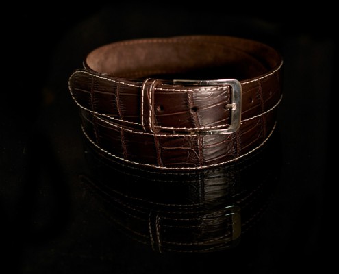 Herrengürtel aus echtem Krokodilleder mit Gürtelschnalle aus Sterling Silber