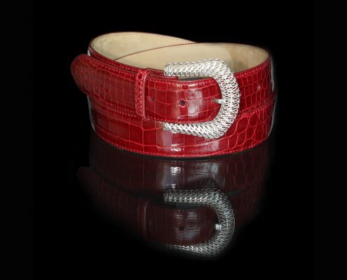 Damengürtel aus Krokodilleder in der Farbe Rubin