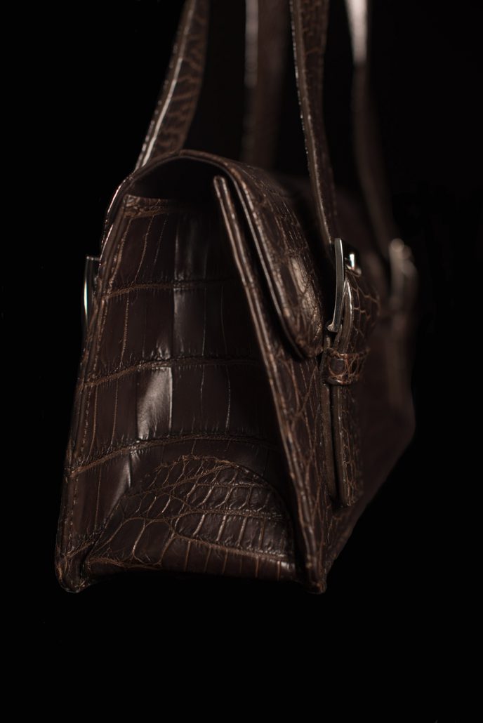 Die elegante Damentasche ist aus feinstem Krokodilleder in liebevoller Handarbeit hergestellt. Die Inneneinrichtung besteht aus edlem, beigen Veloursleder und bietet ein Steckfach für Ihr Smartphone und einen Kosmetikspiegel, der natürlich mit dem gleichen Krokodilleder überzogen ist.