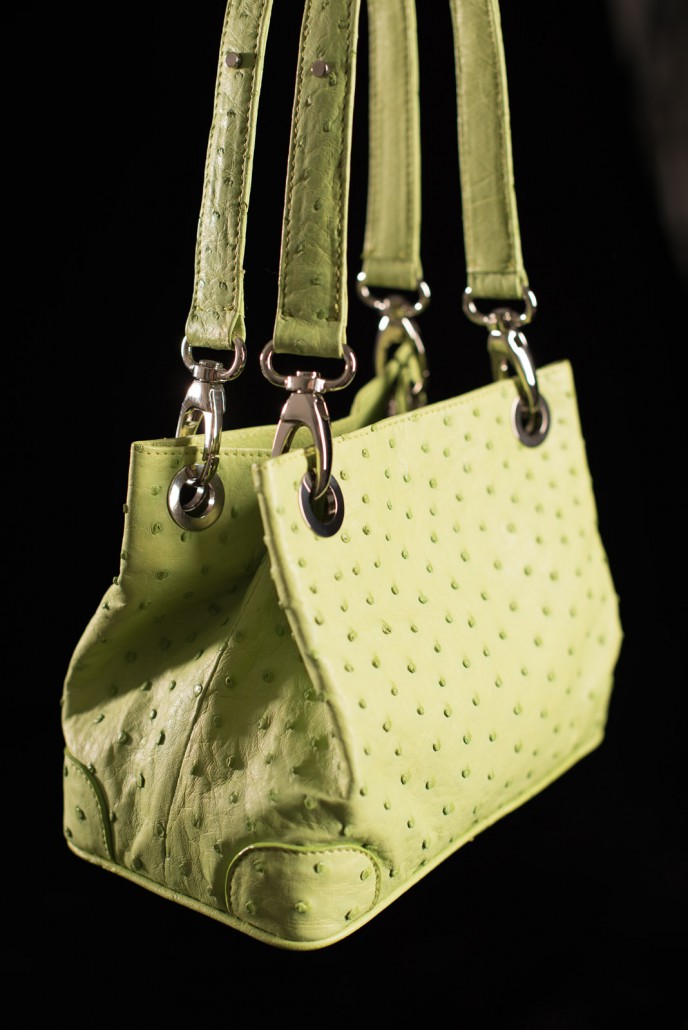 Während die Außenteile aus hochwertigem Straußenleder produziert sind, besteht die Innentasche aus feinstem Schlangenleder.